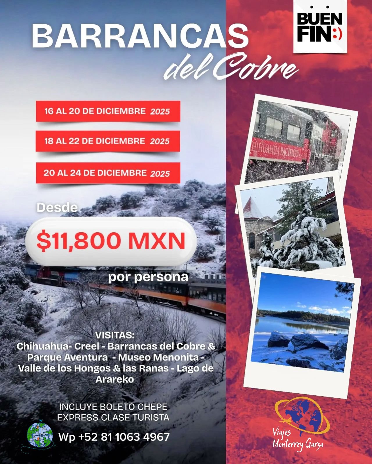 Incluye Boletos del Chepe Express En clase Turista